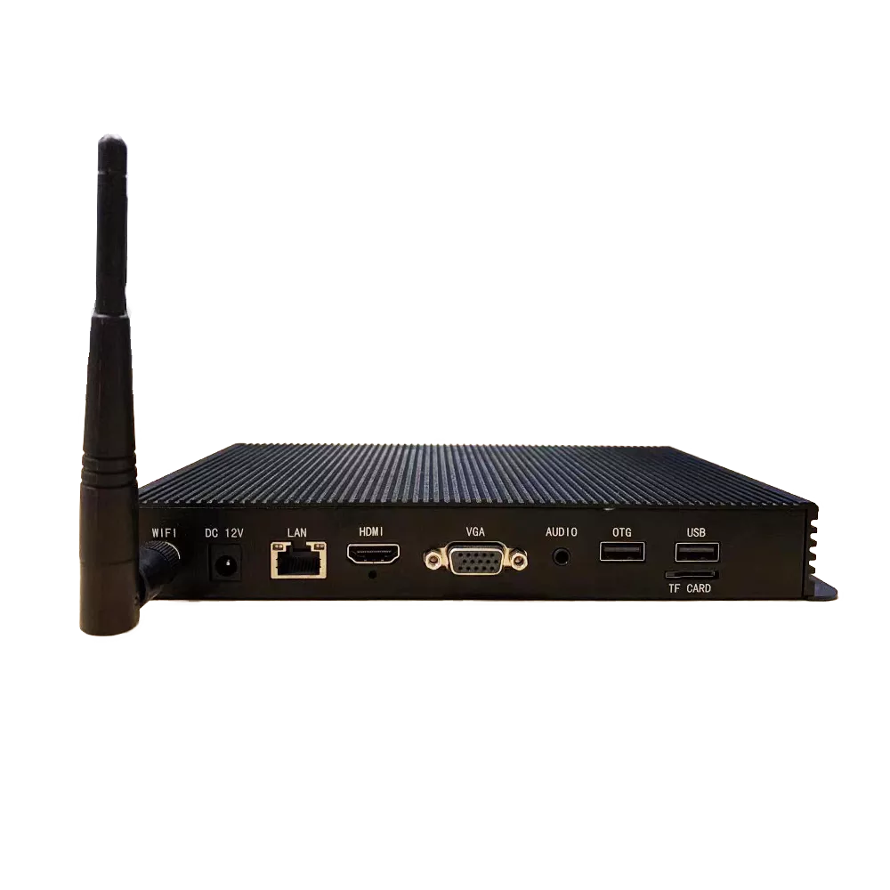 The RK3288 is a high-performance digital signage player powered by an eight-core ARM Cortex A17 processor, clocked at 1.8 GHz, and complemented by 2GB of RAM and 8GB of storage. This media player supports 4K H.265 video playback, making it ideal for displaying high-definition content with vibrant clarity.