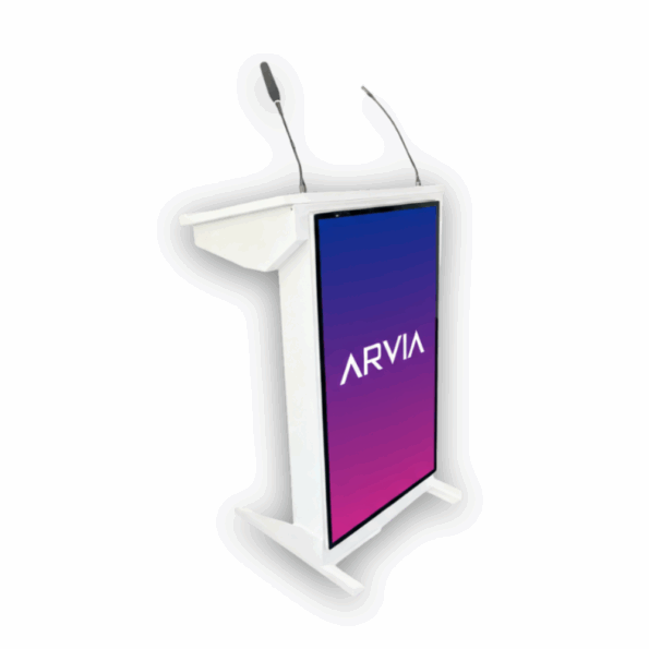 Arvia Smart Podium 43” – An interactive digital podium with dual screen, microphone & speakers for professional presentations.